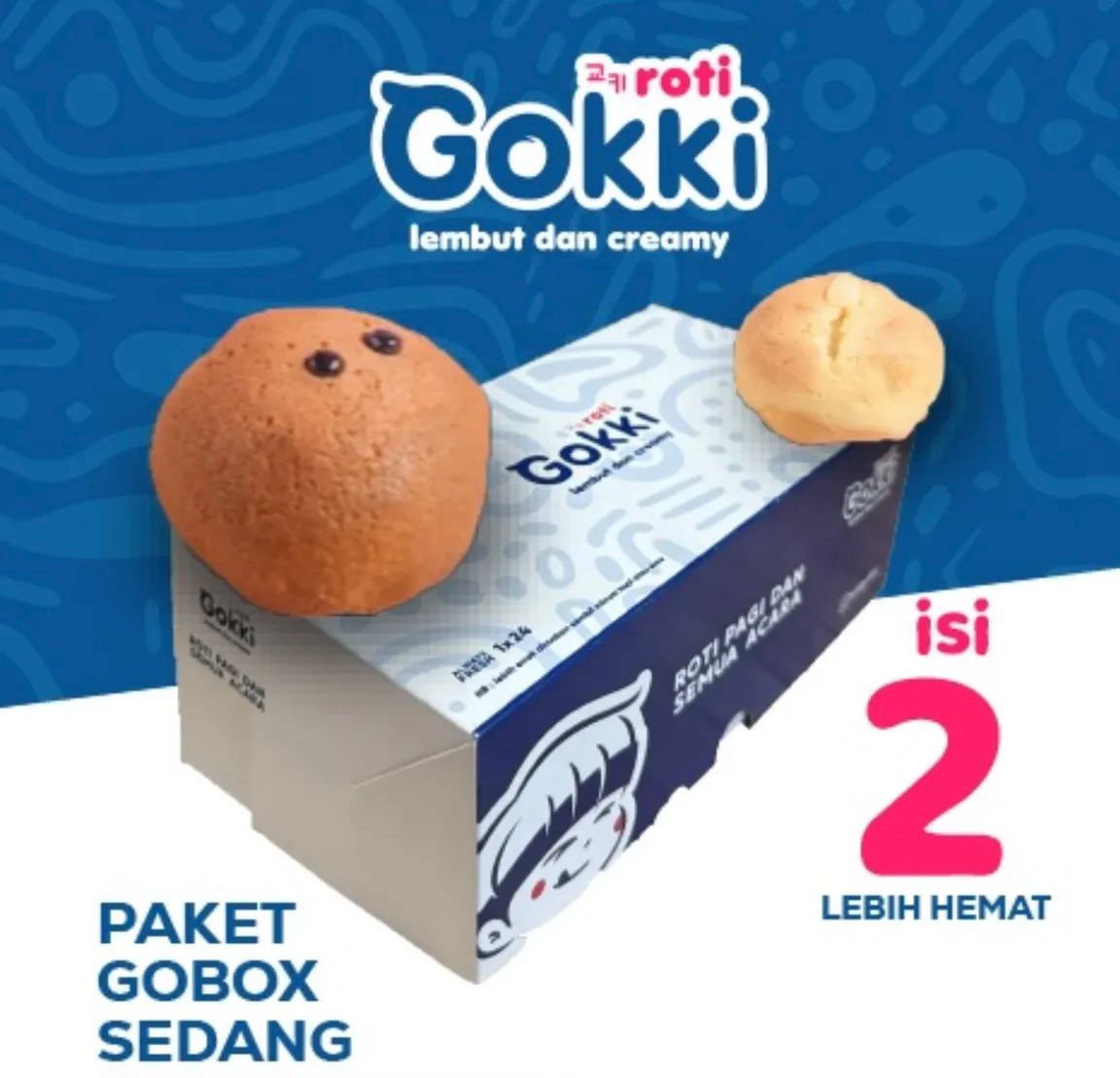 Lagi punya acara? Hadirkan Roti Gokki untuk acara spesial kamu. Ada Go Box 2 dengan paket isi 2 roti varian apa aja.